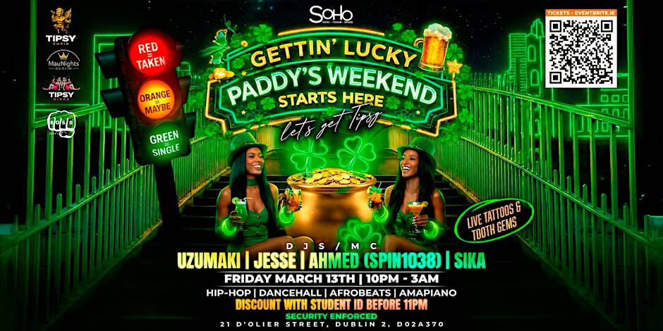 We are bringing Gettin’ Lucky to kick off Paddy’s Weekend with a night built for sweaty dancefloors, unmatched energy & cheeky flirt!
