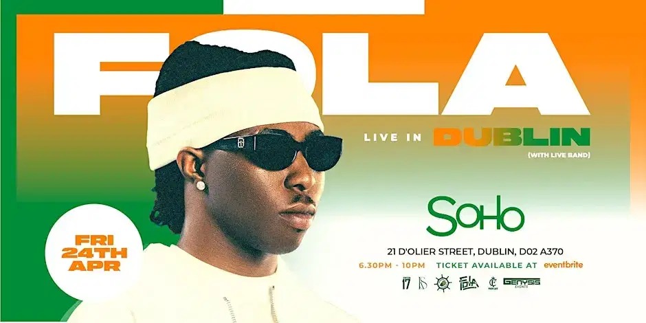 Join us for an unforgettable night with Fola hitting the stage live with a band right here in Dublin! This in-person gig promises great vibes and a chance to see Fola up close and personal. Whether you’re a longtime fan or just love good music, this event is gonna be a blast. Don’t miss out on the fun – come rock with us in Dublin!